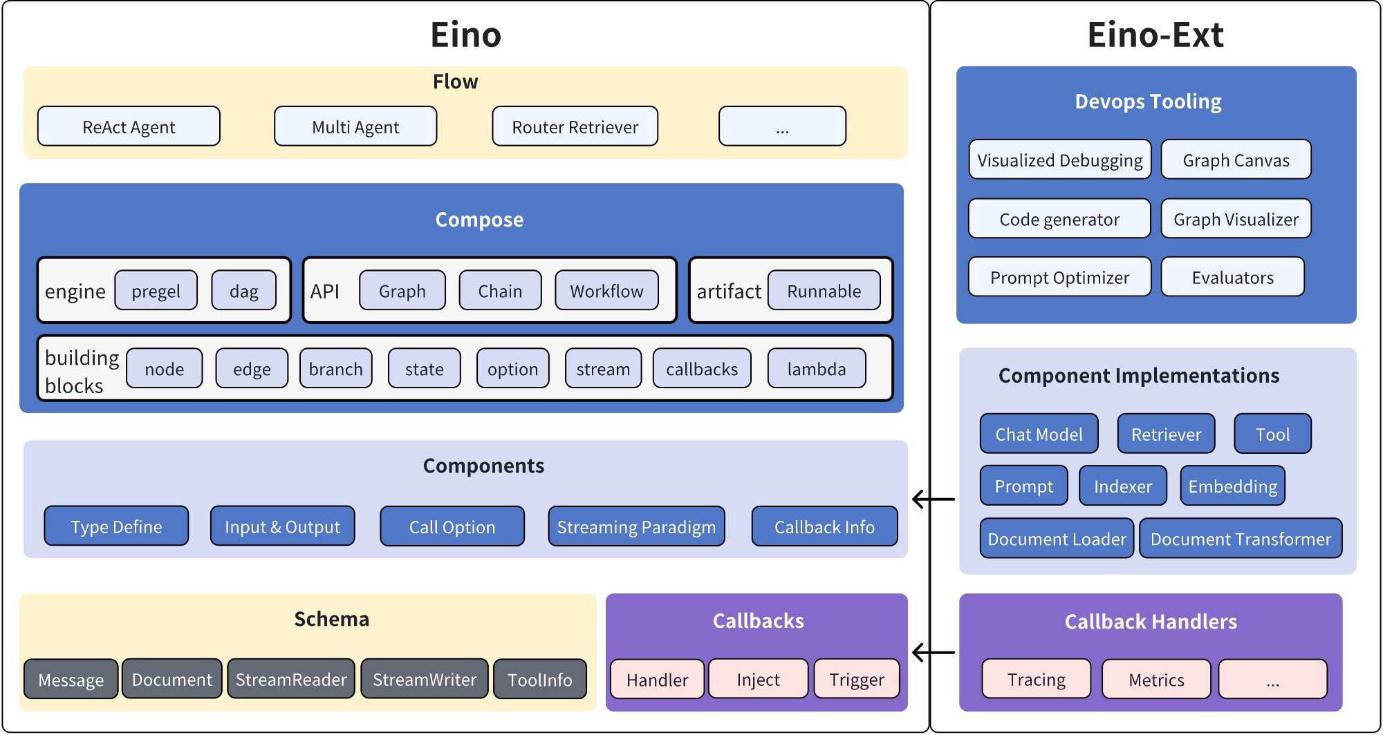 - Project: https://github.com/cloudwego/eino, https://github.com/cloudwego/eino-ext